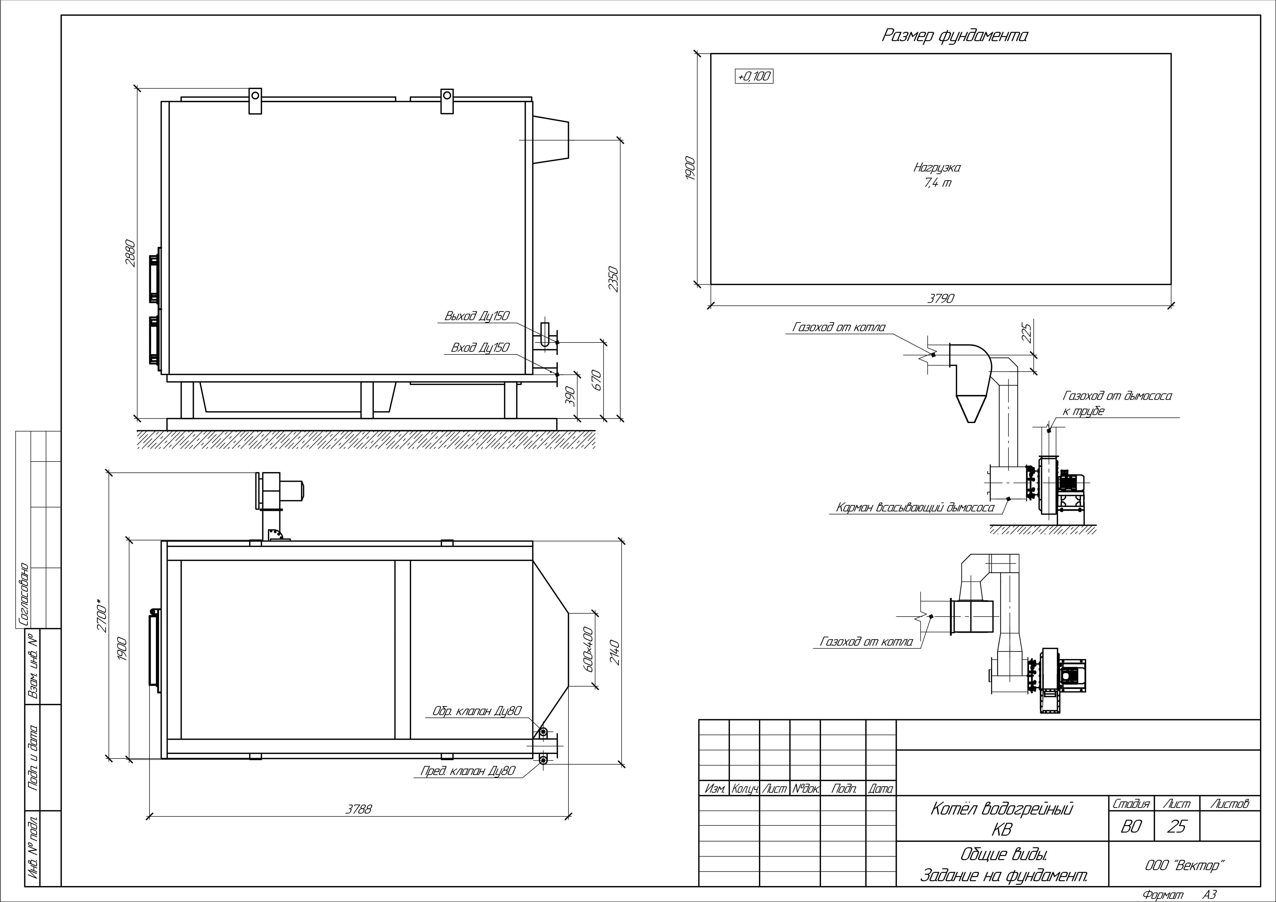 Водогрейный котел КВм-3.5 на древесных отходах со шнековой подачей, где: