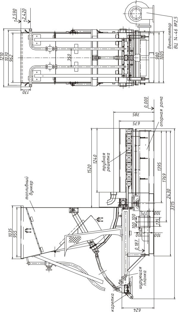 Отличительная особенность топки ТШПМ-0.8 — шурующая планка. Ее основная задача — распределять топливо по решетке образуя равномерный слой для полноценного сжигания. Также, при помощи планки происходит сброс прогоревшего топлива в виде шлака и золы в камеру отходов, расположенную под колосниковой решеткой.
